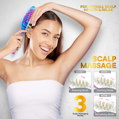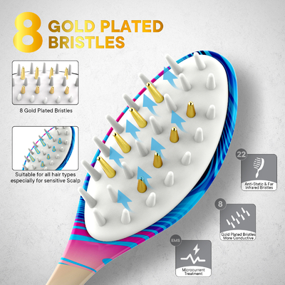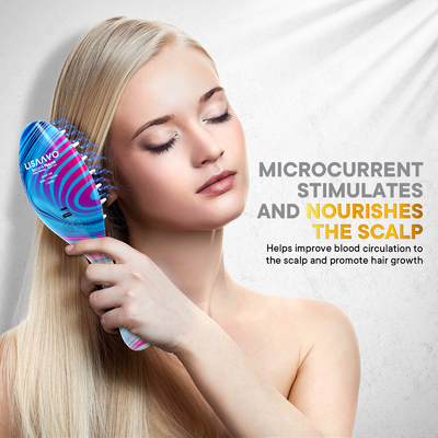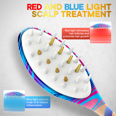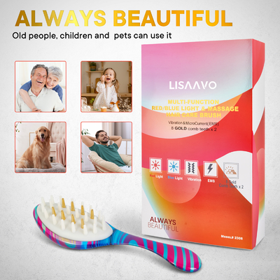 W sprawie2308 Wielofunkcyjna szczotka do pielęgnacji włosówłącząceterapia światłem czerwonym i niebieskim,Mikrokrąg EMS, oraztechnologia wibracjiaby promować zdrowsze włosy, zmniejszać wypadanie włosów i spowolnić występowanie białych włosów.Jego wielofunkcyjna konstrukcja zapewnia również relaksujący masaż skóry głowy, podczas gdy antystatyczne zęby grzebienia FIR pomagają stymulować krążenie krwi dla poprawy witalności skóry głowy.
