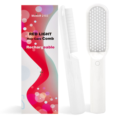 The Model 2103 is a handheld red light therapy comb (625 & 660nm) designed for home use and travel to maintain healthy hair, reduce hair loss, and prevent premature graying. The comb also functions as an effective scalp massager.